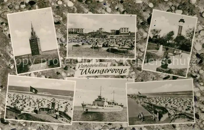 AK / Ansichtskarte Wangerooge_Nordseebad Westturm Strand Leuchtturm Faehre Wangerooge_Nordseebad