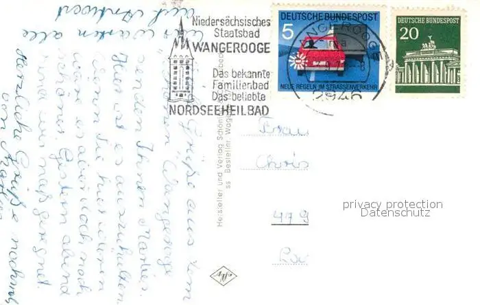 Wangerooge_Nordseebad Westturm Strand Leuchtturm Faehre Wangerooge_Nordseebad postalisch gelaufen 1971 Erhaltung siehe scans [FriedD77] Frierer
