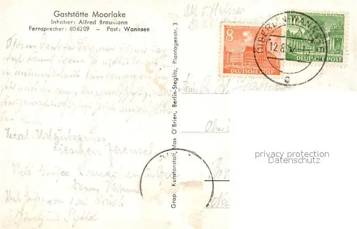 Wannsee Gaststaette Moorlake Terrasse Wannsee postalisch gelaufen 1952 Erhaltung siehe scans [FriedD77] Frierer