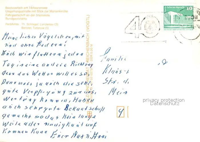 Waren_Mueritz Bootsverleih Tiefwarensee Umgehungsstrasse Marienkirche Fahrgastschiff Steinmole Rundgaststaette Waren Mueritz postalisch gelaufen 1989 Erhaltung siehe scans [FriedD77] Frierer