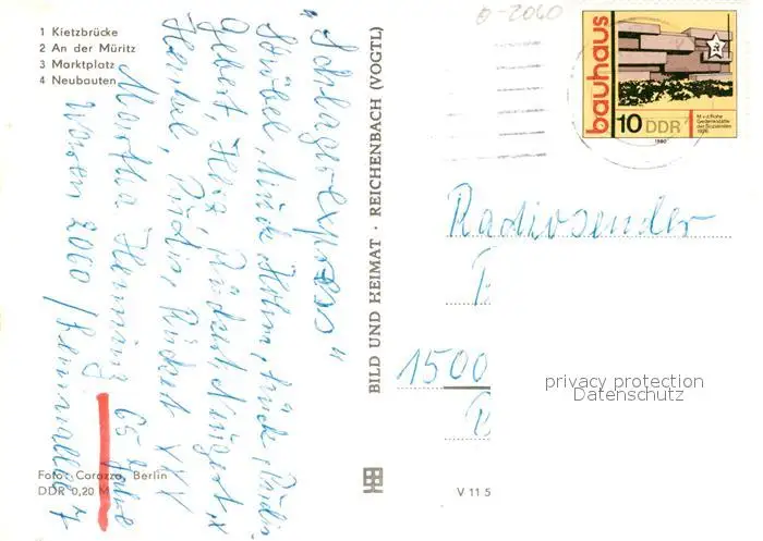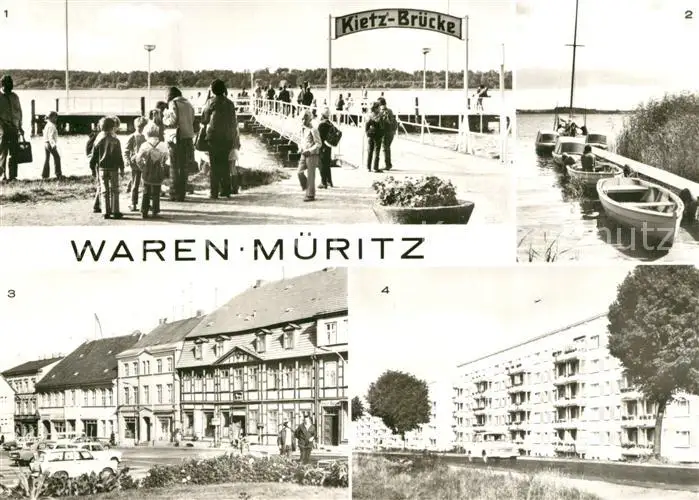 Waren_Mueritz Kietzbruecke Mueritz Mecklenburgische Seenplatte Marktplatz Neubauten Waren Mueritz postalisch gelaufen 1982 Erhaltung siehe scans [FriedD77] Frierer
