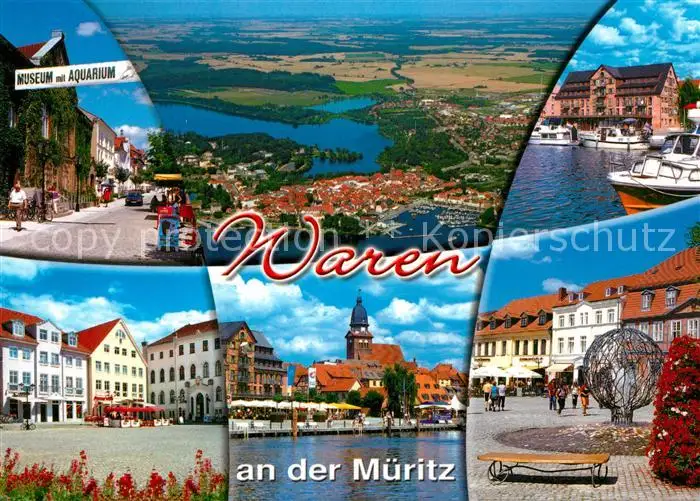 AK / Ansichtskarte Waren_Mueritz Museum Aquarium Fliegeraufnahme Marktplatz Uferpromenade Waren Mueritz
