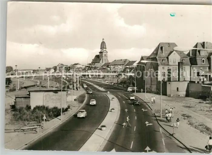 AK / Ansichtskarte Waren_Mueritz Verkehrsstrasse Blick zur Kirche Waren Mueritz