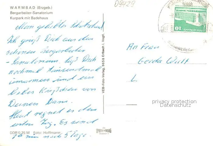 Warmbad_Wolkenstein Bergarbeiter Sanatorium Kurpark mit Badehaus Warmbad_Wolkenstein postalisch gelaufen 1985 Erhaltung siehe scans [FriedD77] Frierer