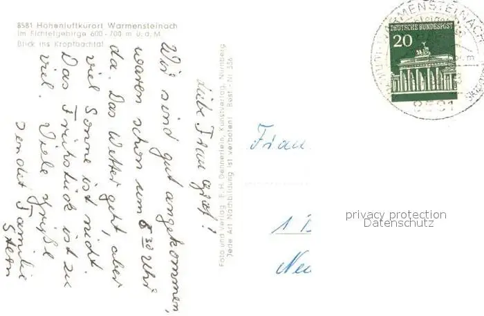 Warmensteinach Blick ins Kropfbachtal Warmensteinach postalisch gelaufen nach 1965 Erhaltung siehe scans [WerneD78] WernPID7
