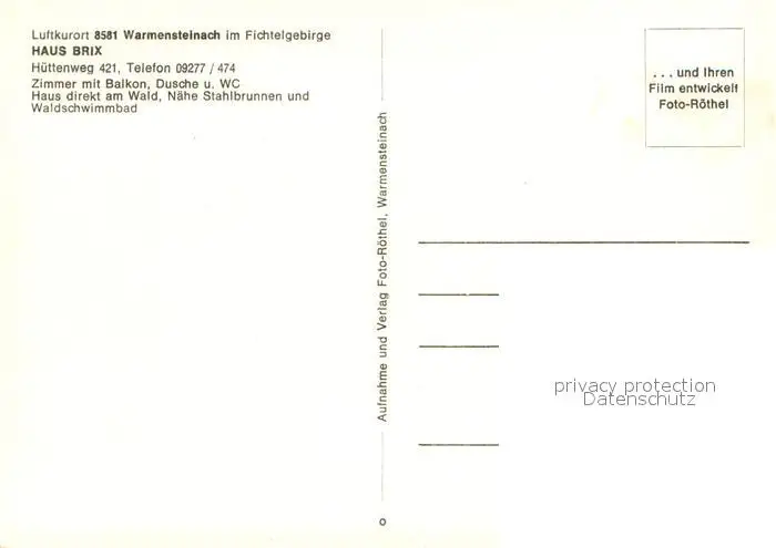 Warmensteinach Haus Brix Warmensteinach postalisch nicht gelaufen nach 1965 Erhaltung siehe scans [WerneD78] WernPID7