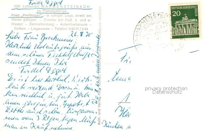 Warmensteinach Haus Preissinger Warmensteinach postalisch gelaufen 1970 Erhaltung siehe scans [WerneD78] WernPID7