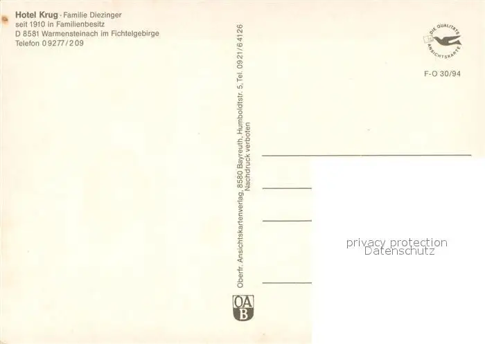 Warmensteinach Hotel Krug Warmensteinach postalisch nicht gelaufen nach 1965 Erhaltung siehe scans [WerneD78] WernPID7