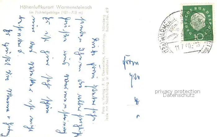 Warmensteinach Panorama Warmensteinach postalisch gelaufen 1960 Erhaltung siehe scans [WerneD78] WernPID7