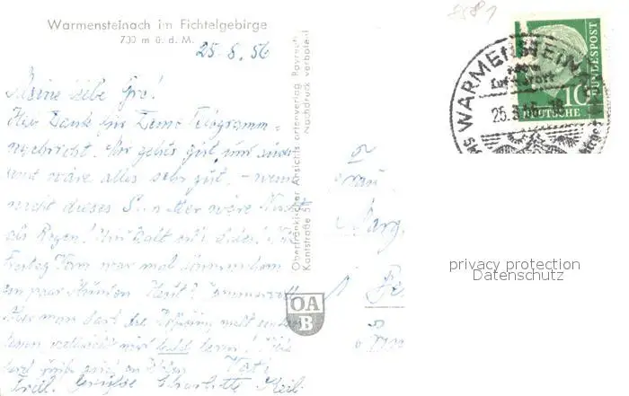Warmensteinach Panorama Warmensteinach postalisch gelaufen 1956 Erhaltung siehe scans [WerneD78] WernPID7