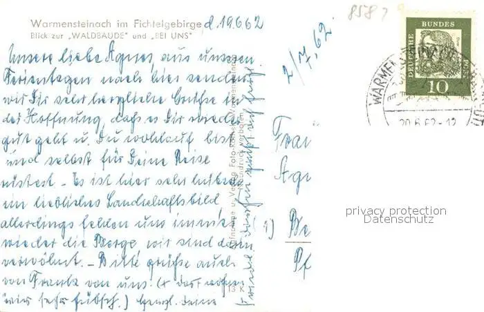 Warmensteinach Panorama mit Waldbaude Warmensteinach postalisch gelaufen 1962 Erhaltung siehe scans [WerneD78] WernPID7