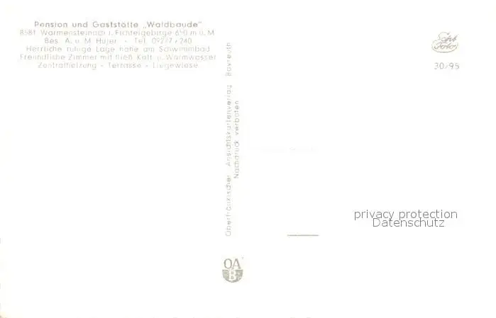 Warmensteinach Pension und Gaststaette Waldbaude Warmensteinach postalisch nicht gelaufen nach 1965 Erhaltung siehe scans [WerneD78] WernPID7