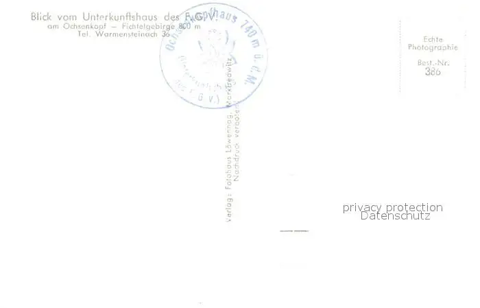 Warmensteinach Unterkunftsaus FGV Ochsenkopf Warmensteinach postalisch nicht gelaufen 1921-1965 Erhaltung siehe scans [KathaD81] Kathoren