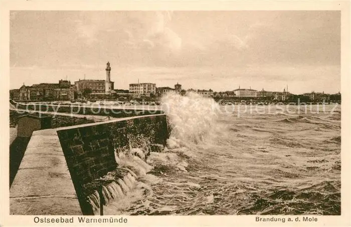 Warnemuende_Ostseebad Brandung an der Mole Warnemuende_Ostseebad postalisch nicht gelaufen 1921-1965 Erhaltung siehe scans [WerneD78] WernPID7
