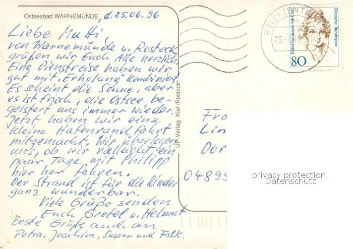 Warnemuende_Ostseebad Fliegeraufnahme Strand Warnemuende_Ostseebad postalisch gelaufen 1996 Erhaltung siehe scans [LiesaD40] LiesID40