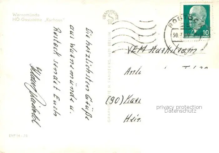 Warnemuende_Ostseebad HO Gaststaette Kurhaus Warnemuende_Ostseebad postalisch gelaufen 1969 Erhaltung siehe scans [FriedD77] Frierer