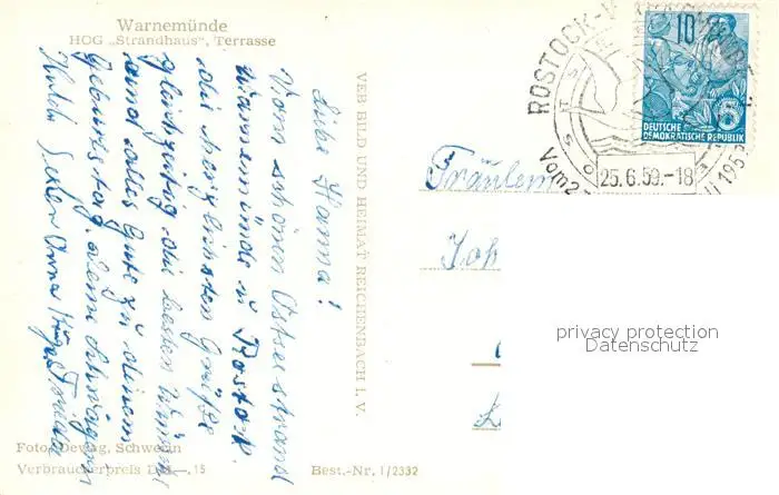 Warnemuende_Ostseebad HOG Strandhaus Terrasse Warnemuende_Ostseebad postalisch gelaufen 1959 Erhaltung siehe scans [LiesaD40] LiesID40