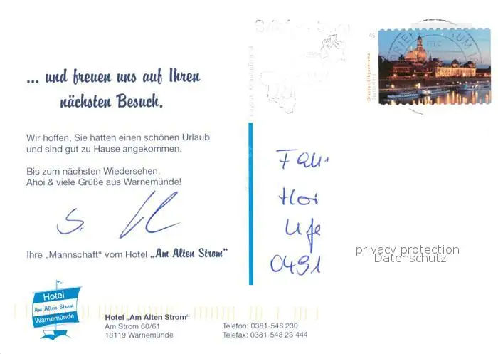 Warnemuende_Ostseebad Kategorie Alte Ansichtskarten Postkarten bx62368 Warnemuende_Ostseebad Hotel Am Alten Strom Warnemuende_Ostseebad postalisch gelaufen nach 1965 Erhaltung siehe scans [KathaD81]