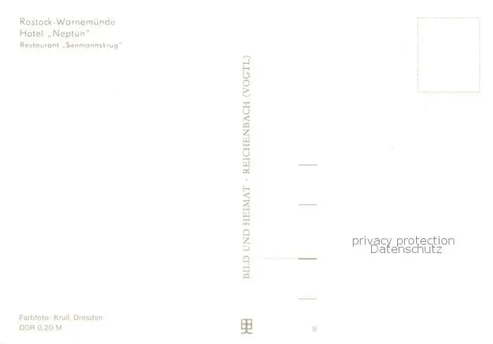 Warnemuende_Ostseebad Hotel Neptun Restaurant Seemannskrug Warnemuende_Ostseebad postalisch nicht gelaufen nach 1965 Erhaltung siehe scans [FriedD77] Frierer