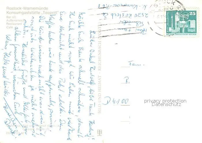 Warnemuende_Ostseebad Konsumgaststaette Teepott Bar Restaurant Café Warnemuende_Ostseebad postalisch gelaufen 1983 Erhaltung siehe scans [FriedD77] Frierer