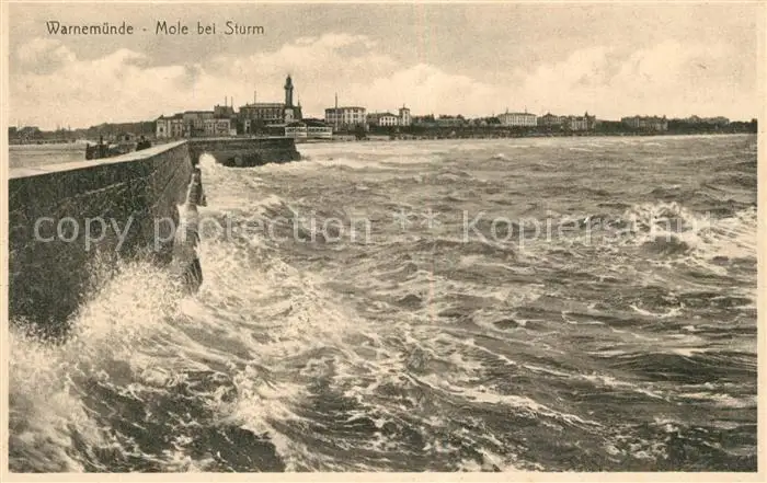 Warnemuende_Ostseebad Mole bei Sturm Warnemuende_Ostseebad postalisch nicht gelaufen 1921-1965 Erhaltung siehe scans [WerneD78] WernPID7