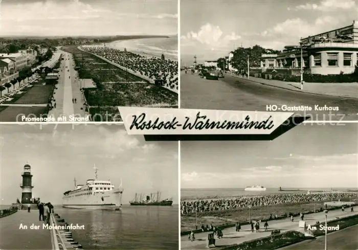 AK / Ansichtskarte Warnemuende_Ostseebad Promenade Strand HO Gaststaette Kurhaus Moleneinfahrt Faehre Leuchtturm Warnemuende_Ostseebad