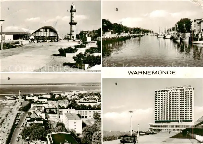 Warnemuende_Ostseebad Strandpromenade Leuchtturm Teepott Am Alten Strom Hafenpartie Hotel Neptun Warnemuende_Ostseebad postalisch gelaufen nach 1965 Erhaltung siehe scans [WerneD78] WernPID7