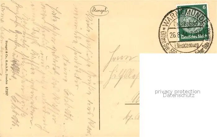 Warnemuende_Ostseebad Stuermische See Mole Dampfer Warnemuende_Ostseebad postalisch gelaufen 1934 Erhaltung siehe scans [FriedD77] Frierer