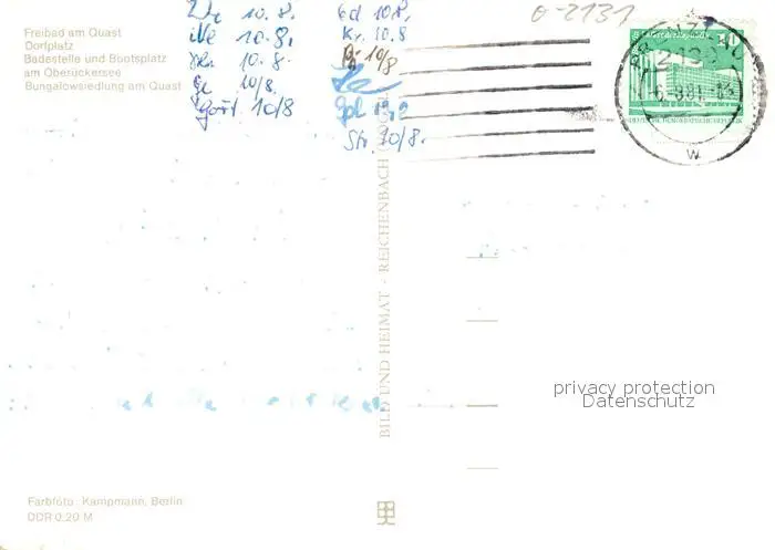 Warnitz Freibad am Quast Ober?ckersee Bungalows Warnitz postalisch gelaufen 1981 Erhaltung siehe scans [LiesaD40] LiesID40