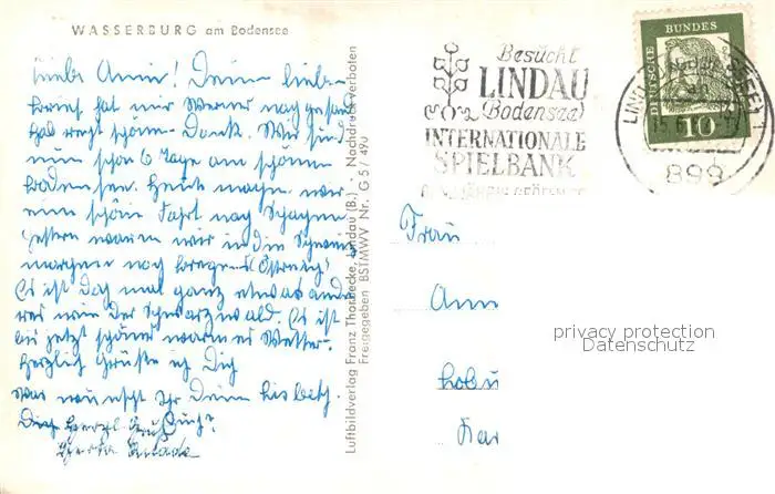 Wasserburg_Bodensee Fliegeraufnahme Wasserburg Bodensee postalisch gelaufen 1962 Erhaltung siehe scans [KathaD81] Kathoren