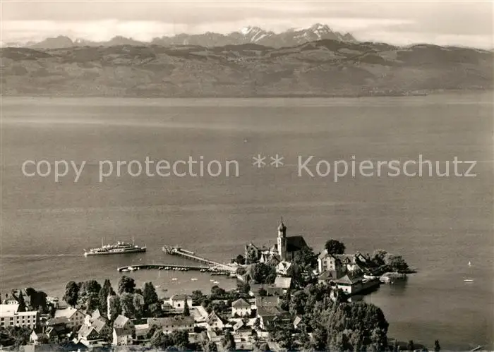 AK / Ansichtskarte Wasserburg_Bodensee Fliegeraufnahme mit Saentis Wasserburg Bodensee