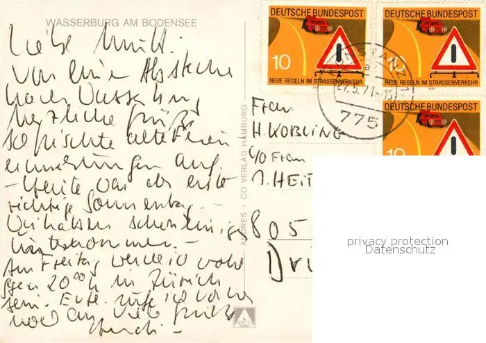 Wasserburg_Bodensee Uferpartie am See Blick zur Kirche Wasserburg Bodensee postalisch gelaufen 1971 Erhaltung siehe scans [FriedD77] Frierer