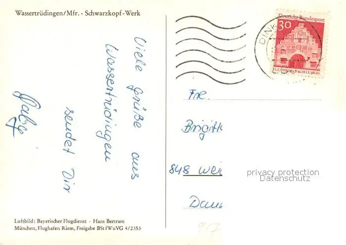Wassertruedingen Schwarzkopf Werk Fliegeraufnahme Wassertruedingen postalisch gelaufen nach 1965 Erhaltung siehe scans [WerneD78] WernPID7