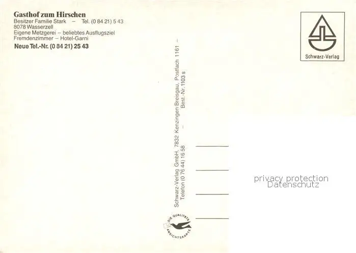 Wasserzell_Eichstaett Gasthaus zum Hirschen Wasserzell_Eichstaett postalisch nicht gelaufen nach 1965 Erhaltung siehe scans [LiesaD40] LiesID40