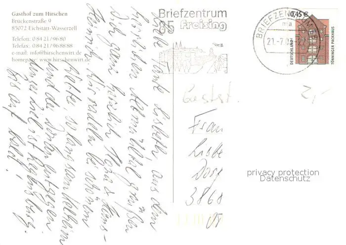 Wasserzell_Eichstaett Gasthof zum Hirschen Wasserzell_Eichstaett postalisch gelaufen 2003 Erhaltung siehe scans [WerneD78] WernPID7