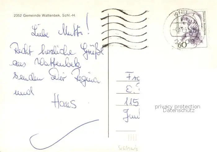 Wattenbek Ortspartie Park Wattenbek postalisch gelaufen 1991 Erhaltung siehe scans [WerneD78] WernPID7