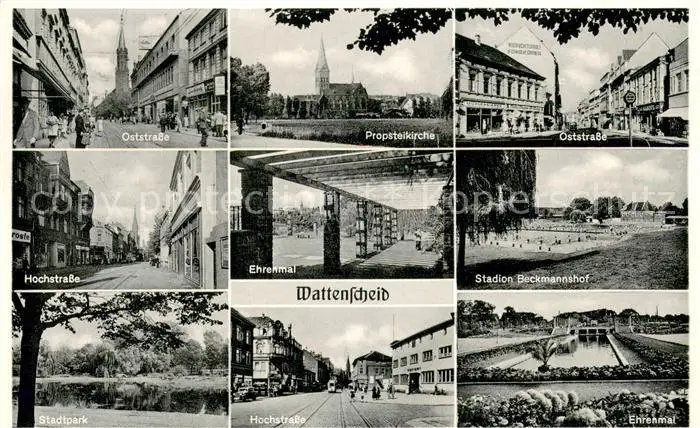 AK / Ansichtskarte Wattenscheid Oststrasse Propsteikirche Ehrenmal Stadtpark Wattenscheid