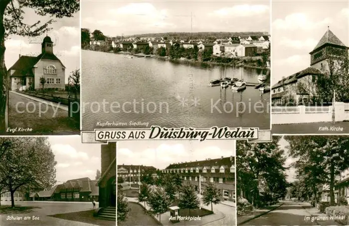 AK / Ansichtskarte Wedau_Duisburg Kupferhuettensiedlung Evgl. Kirche Kath. Kirche Wedau Duisburg