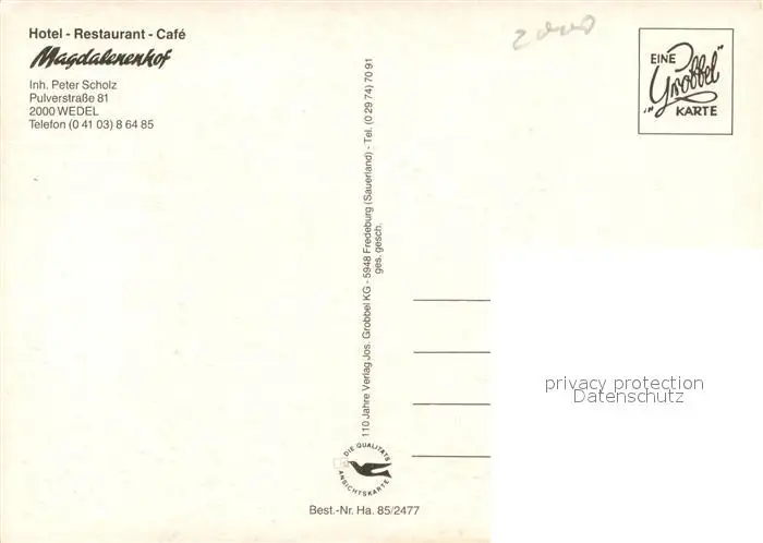 Wedel_Pinneberg Hotel Restaurant Magdalenenhof Wedel Pinneberg postalisch nicht gelaufen nach 1965 Erhaltung siehe scans [FriedD77] Frierer