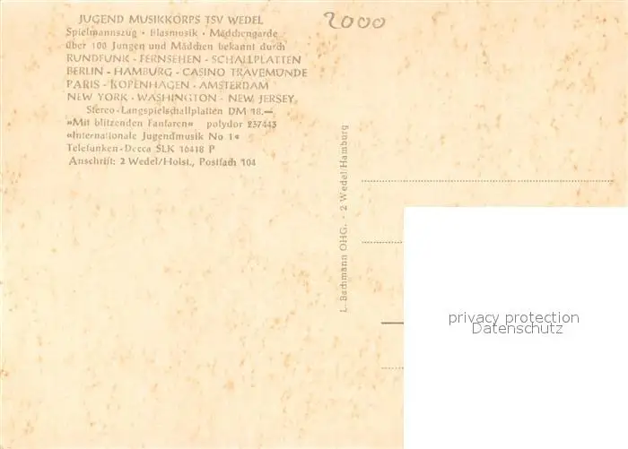 Wedel_Pinneberg Jugend Musikkiorps TSV Wedel Wedel Pinneberg postalisch nicht gelaufen nach 1965 Erhaltung siehe scans [LiesaD40] LiesID40