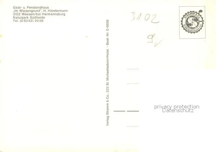 Weesen_Hermannsburg Gast und Pensionshaus Im Wiesengrund Gaststube Weesen Hermannsburg postalisch nicht gelaufen nach 1965 Erhaltung siehe scans [WerneD78] WernPID7