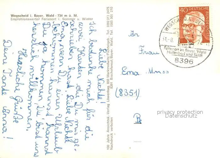 Wegscheid_Niederbayern Panorama Wegscheid Niederbayern postalisch gelaufen 1974 Erhaltung siehe scans [KathaD81] Kathoren