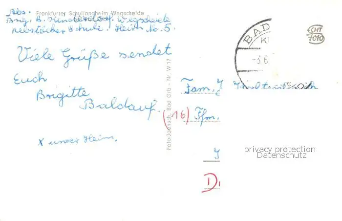 Wegscheide_Bad_Orb Kategorie Alte Ansichtskarten Postkarten bx54258 Wegscheide_Bad_Orb Frankfurter Schullandheim Wegscheide_Bad_Orb postalisch gelaufen Erhaltung siehe scans [NatalD47]