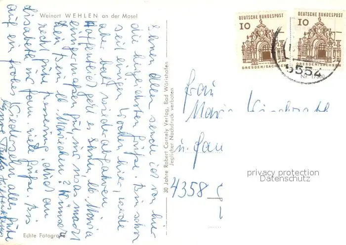 Wehlen_Mosel Panorama Wehlen_Mosel postalisch gelaufen nach 1965 Erhaltung siehe scans [WerneD78] WernPID7