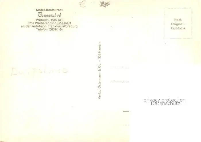 Weibersbrunn Motel Restaurant Brunnenhof Weibersbrunn postalisch nicht gelaufen nach 1965 Erhaltung siehe scans [FriedD77] Frierer