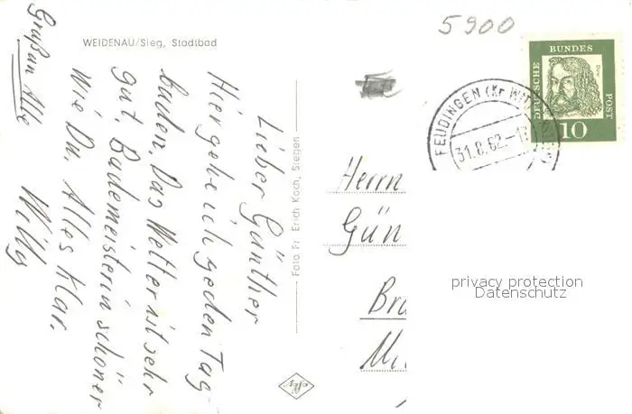 Weidenau_Sieg Stadtbad Weidenau Sieg postalisch gelaufen 1962 Erhaltung siehe scans [FriedD77] Frierer
