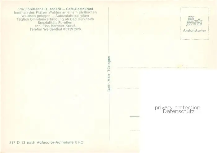 Weidenthal_Pfalz Forellenhaus Isenach Cafe Restaurant Gondelteich Weidenthal Pfalz postalisch nicht gelaufen nach 1965 Erhaltung siehe scans [WerneD78] WernPID7