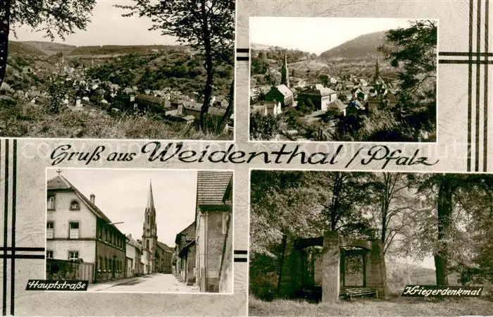 Weidenthal Pfalz Kategorie Alte Ansichtskarten Postkarten bx89672 Weidenthal_Pfalz Panorama Hauptstrasse Kriegerdenkmal Weidenthal Pfalz postalisch gelaufen Erhaltung siehe scans [FriedD77]