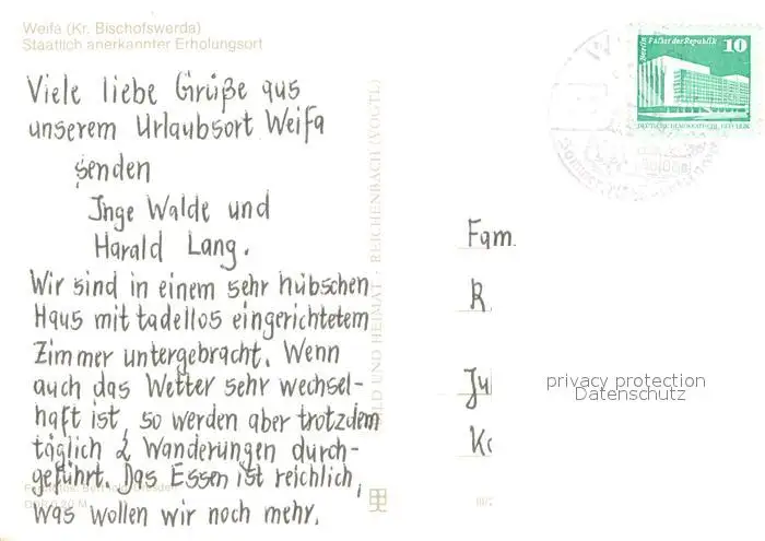 Weifa Ortsmotive Weifa postalisch gelaufen 1986 Erhaltung siehe scans [FriedD77] Frierer