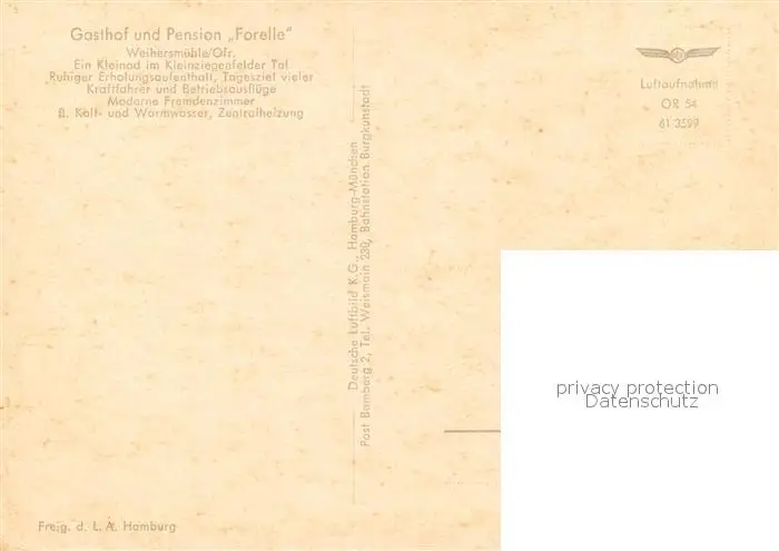 Weihersmuehle_Weismain Gasthof Pension Forelle Kleinziegenfelder Tal Fliegeraufnahme Weihersmuehle_Weismain postalisch nicht gelaufen nach 1965 Erhaltung siehe scans [FriedD77] Frierer